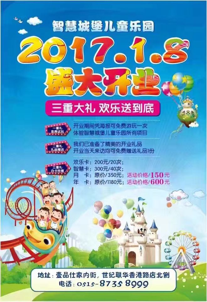 阜寧縣壹品仕家內(nèi)街智慧天地——智慧城堡1月8日盛大開業(yè),誠邀您帶上您的小寶貝一起來游玩?。。?/h1>