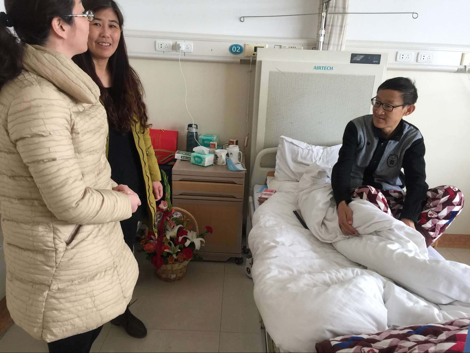 程愛(ài)梅主席詳細(xì)了解了江為華的病情,并詢問(wèn)了治療的相關(guān)情況。并鼓勵(lì)患者家屬,不要過(guò)渡的沉浸在悲傷中,要保重好自己的身體,勇敢地面對(duì)困難,做一個(gè)堅(jiān)強(qiáng)的人;要鼓起勇氣,振奮精神,樹(shù)立信心,積極配合醫(yī)院進(jìn)行治療;江蘇德惠集團(tuán)將時(shí)刻關(guān)注、關(guān)心,相信在家屬的精心照料下,病情一定會(huì)好轉(zhuǎn),一定會(huì)完全康復(fù)。 |