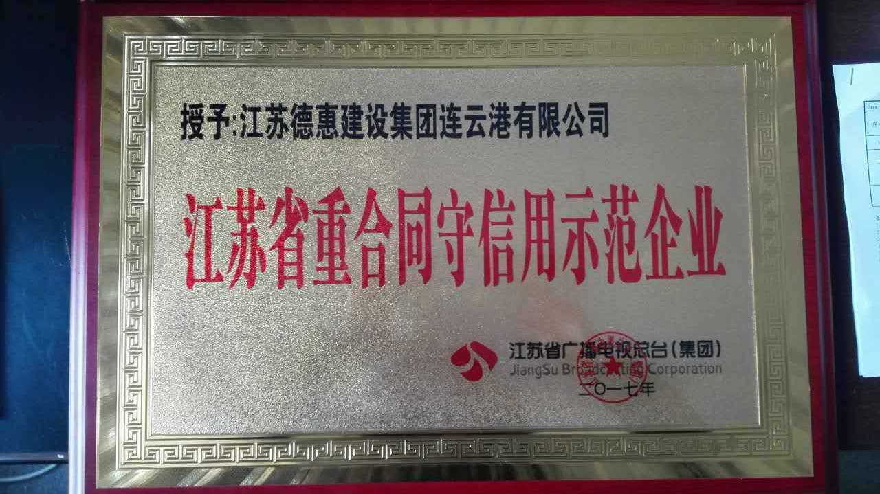 熱烈祝賀江蘇德惠建設集團連云港有限公司被評為“江蘇省重合同守信用示范企業(yè)”!
