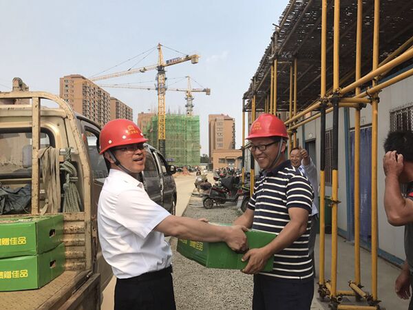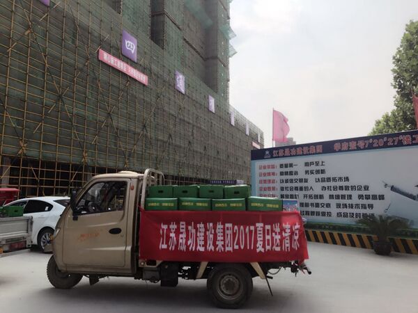 炎炎夏日,驕陽似火也擋不住晟功集團(tuán)領(lǐng)導(dǎo)心系建設(shè)一線員工的匆匆腳步。2017年5月31日下午,為做好夏季安全生產(chǎn)工作,確保一線員工安全度夏,江蘇晟功建設(shè)集團(tuán)開展了“夏日送清涼”活動(dòng)。一輛輛載著香甜可口大西瓜的卡車駛進(jìn)了江蘇晟功建設(shè)集團(tuán)的各項(xiàng)目部工地,給員工們送來了“清涼”,也帶來了集團(tuán)領(lǐng)導(dǎo)們的熱切關(guān)懷。
